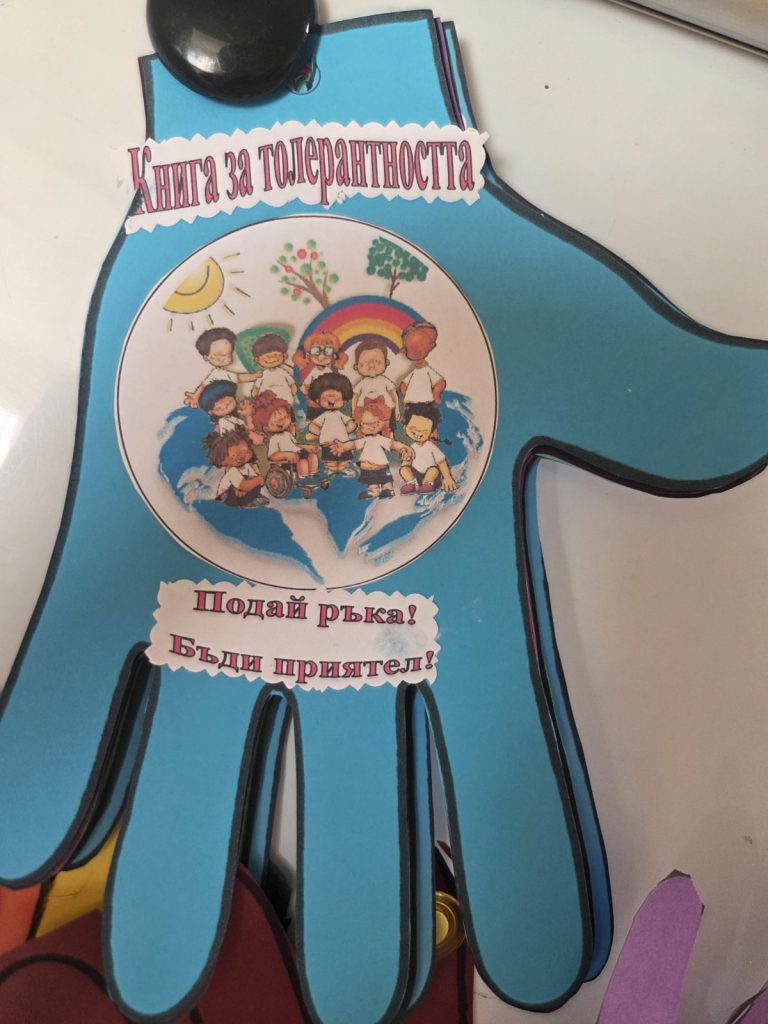 Като част от дейностите децата изработиха и книга за толерантност „Подай ръка! Бъди приятел!“, чрез която показаха колко е важно да бъдем добри, да приемаме различията и да бъдем истински приятели.